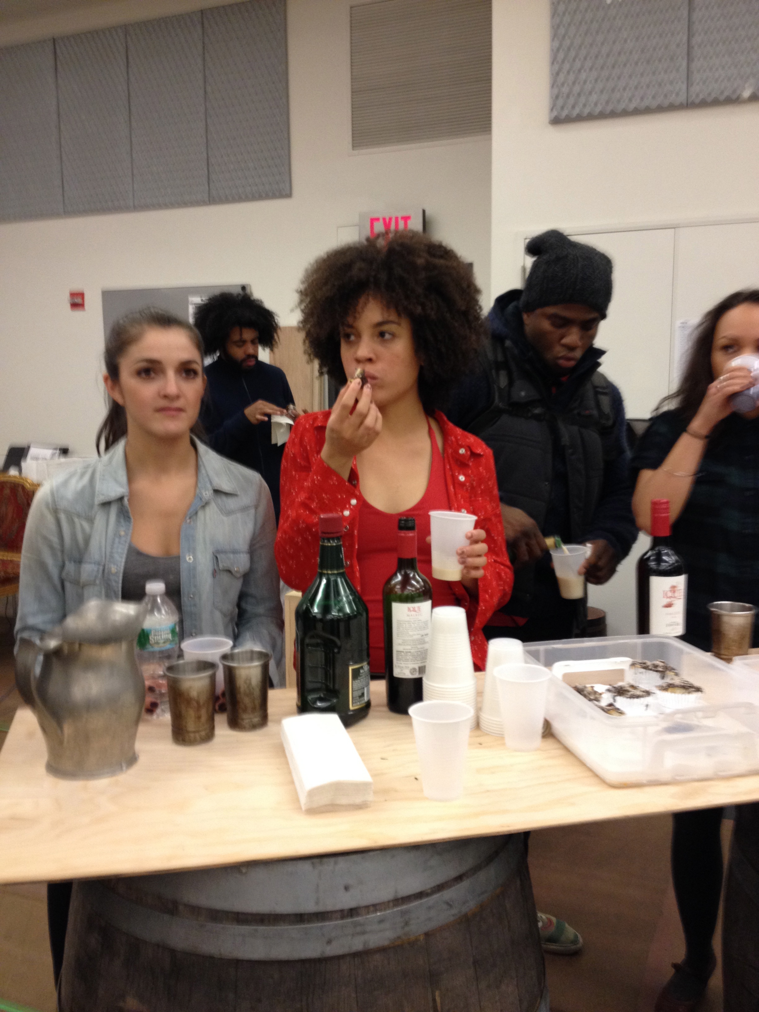 Lin-Manuel Miranda, the composer-lyricist and lead pouring Coquito for the Hamilton cast at Sunday’s Wine and Unwind.