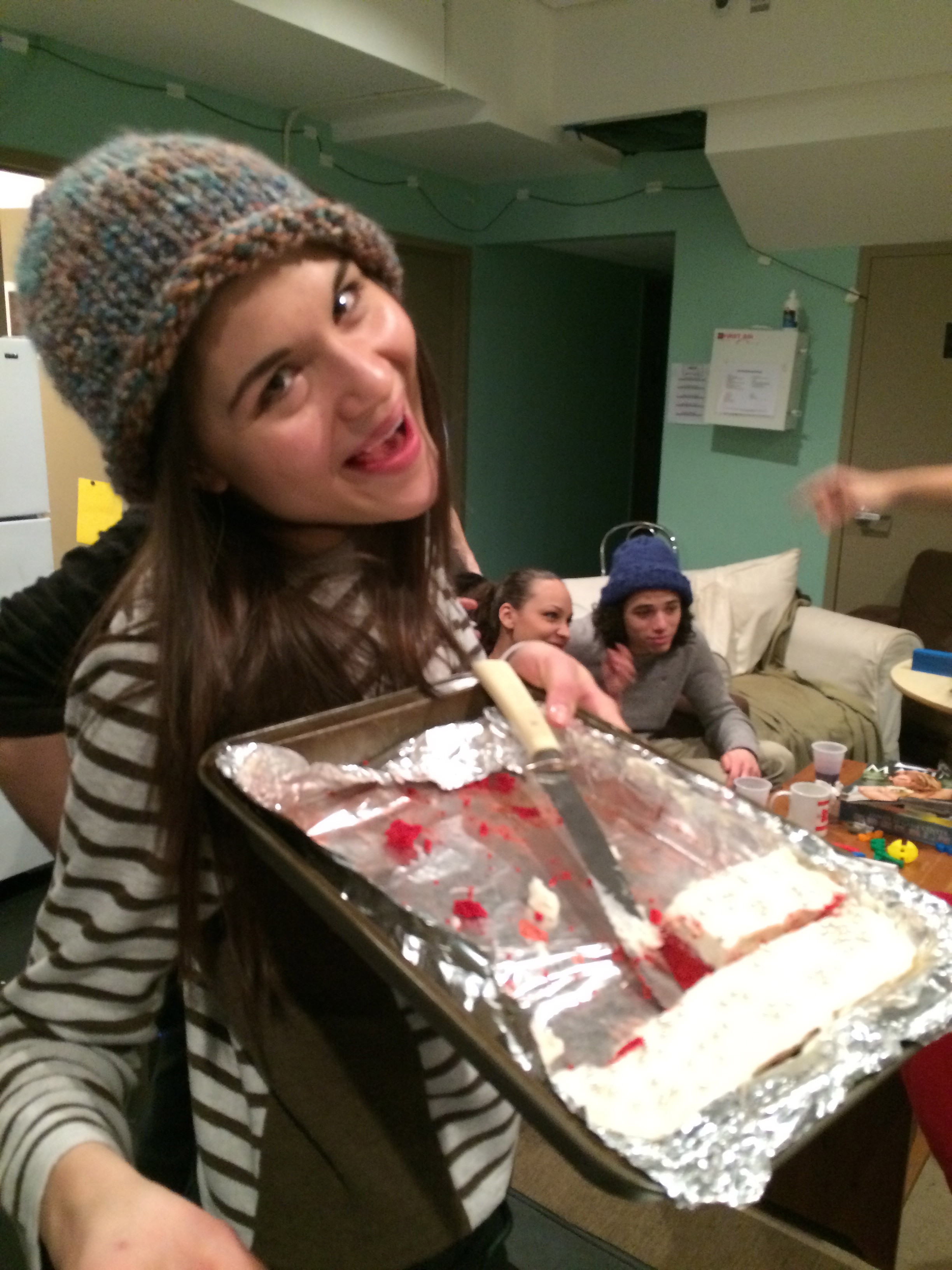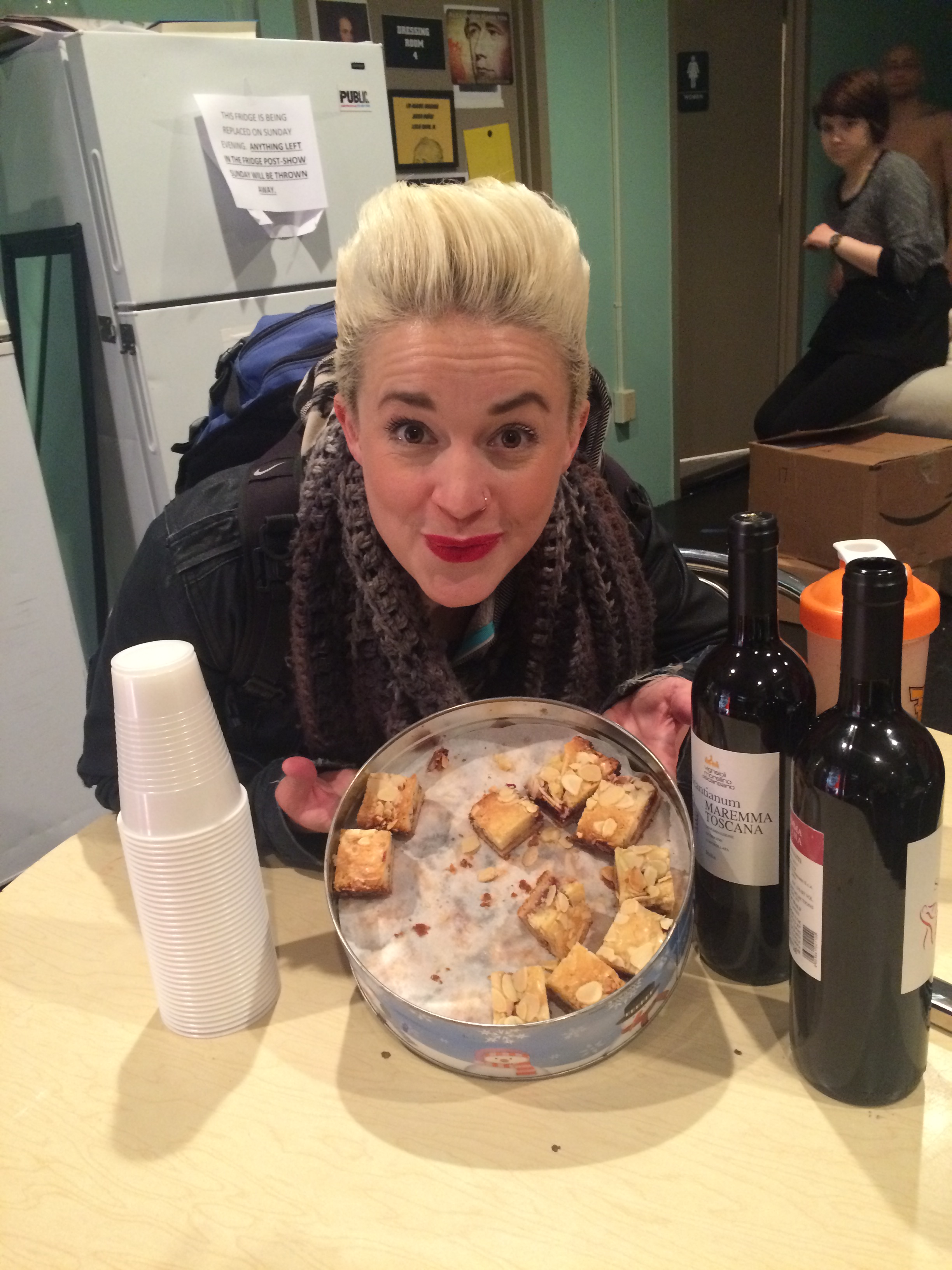 Sophia Ann Caruso and a pan of Baklava she made for the cast and crew of LAZARUS. Notice the large bag of